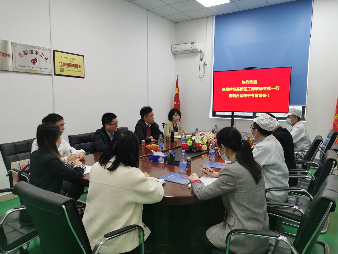 惠州仲愷高新區工商聯(lián)湯建軍主席一行蒞臨惠州市合金電子有限公司考察調研